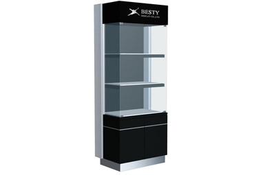 Ebony Veneered MDF Cabinet With LED lightings and Stainless Steel Frame and Kick